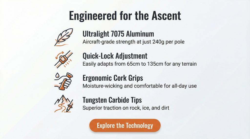【ICB-01】Five-Section 7075 Aluminum Alloy Folding Trekking Poles in Black